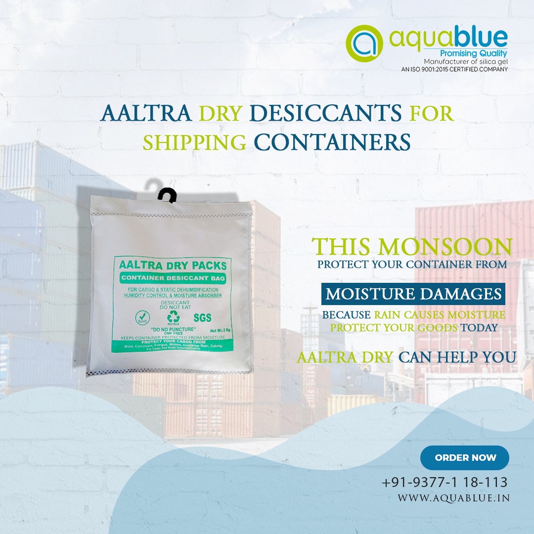 AQUABLUE Container Desiccants a specially formulate desiccant product by our R&D Department. It is widely use in Container / Cargo to protect Goods/Products damage from moisture effect.