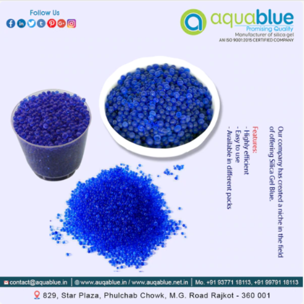 Silica gel Blue packets contain silicon dioxide in a translucent granular form. It has a high porosity allowing it to absorb excess moisture in confined spaces.